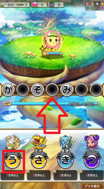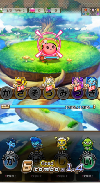 たとえば、「たこ」「ねこ」といった複数の言葉を同時に入力すると、「コンボ」という効果が発生し、さらに「たまご」「ひまわり」といった3文字や4文字の長い言葉を入力すると、「わざ」と呼ばれる特別な技が発動し、敵に大きなダメージを与えることができます。